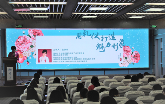 袁教授从自己对“礼仪”二字的理解开始,为大家带来了一些别开生面的礼仪知识和生活智慧。袁教授认为,“礼”和“仪”是两个需要分开理解的概念,“礼”是人际交往的核心,而“仪”只是它的外在形式。她强调,人们在为人处世时应当更注重尊重他人,“礼”的到位自然会带来“仪”的完善。为了更加详尽地阐释生活中的个人礼仪,袁教授进一步提出了“形象至上,形象是金”的理念。她指出,形象是一个人在日常生活和工作中留给他人的印象以及获得的社会评价,具体体现在一个人的仪表、言谈举止等方面。她认为,一个人的发型、着装等外貌是他的第一张名片,而谈吐则是第二张名片。二者不仅是人们在交往过程中对交往对象的尊重,还是一个人自身的教