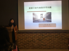 首先,邓老师以一个同学普遍关注和思考的问题开场:为什么要考研?并围绕“考研对于当代大学生的重要意义”这一话题,从增加学习研究的深度、增加就业机会以及结识更多志同道合的朋友等5个方面阐述了读研的优势。其次,邓老师通过介绍在硕士甚至博士阶段进修的典型同学的实例,鼓励同学们精修学业,不断追求更好的自己。并针对同学们比较关心的如何获得保研资格、保研的类别、学院的保研政策,并结合近几年日语专业的保研情况,进行了阐述和分析。她鼓励同学们学习要勤奋刻苦,在关键时候要拿出勇气大胆尝试,争取保研名额。之后,邓老师邀请外语院2014级的唐永蓉同学向同学们分享湖南大学本校保研的经验,内容丰富,令人受益匪浅。
