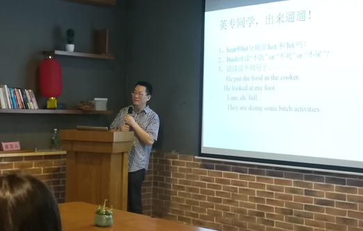 外国语与国际教育学院本科生导师研讨课第十一讲”实用英语语音学习和提高指南”于6月7日下午在学院语言学习与文化交流中心顺利举行。本次研讨课的主讲导师是英语系的汪朋老师。