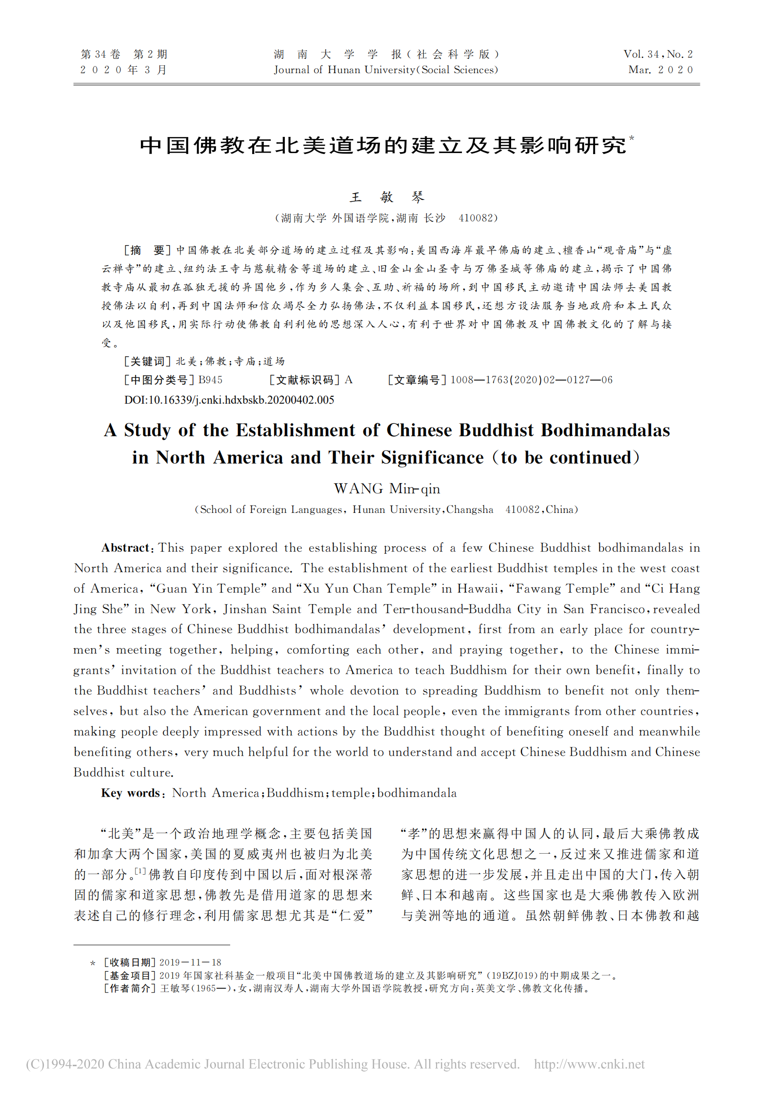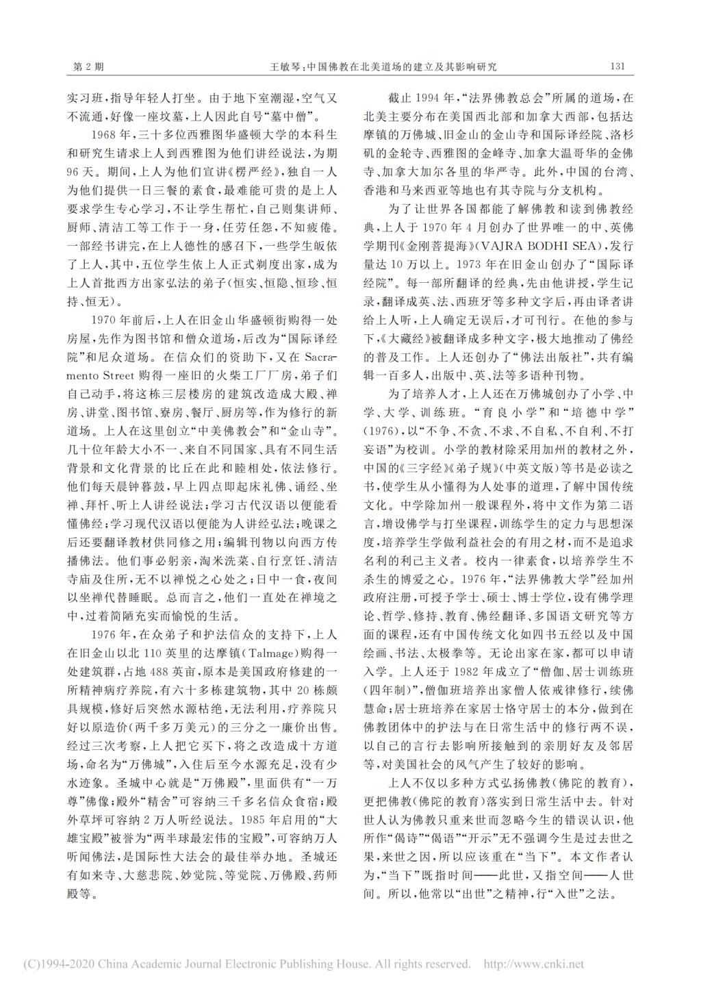 中国佛教在北美道场的建立及其影响研究王敏琴