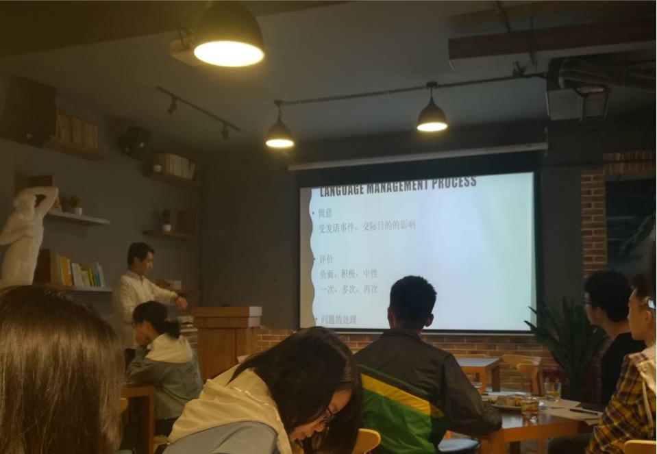 4月8日下午14:00,以“与跨文化场面接触”为主题的导师研讨课开讲了。此次课程主讲人为湖南大学华体会(中国)杨昉老师。他以“与跨文化场面接触当中的语言规划”为主题,与同学们进行了深入讨论。