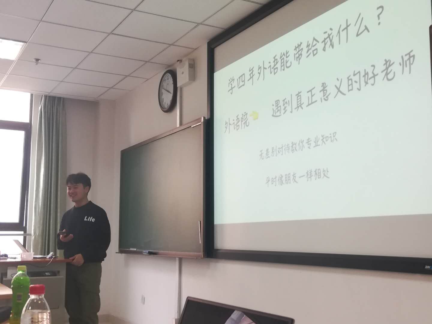 最后,杨泽平学长用“你们准备好了吗?”这个问题结束了今天的分享。转专业不仅仅需要考虑现在的情况,考虑好外语能带给我们什么,更要考虑好另一个专业能给我们带来什么,考虑好转走后面临的沉重繁忙的学业压力。转专业是慎重的选择,希望大家在今后的生活中能够始终如一。