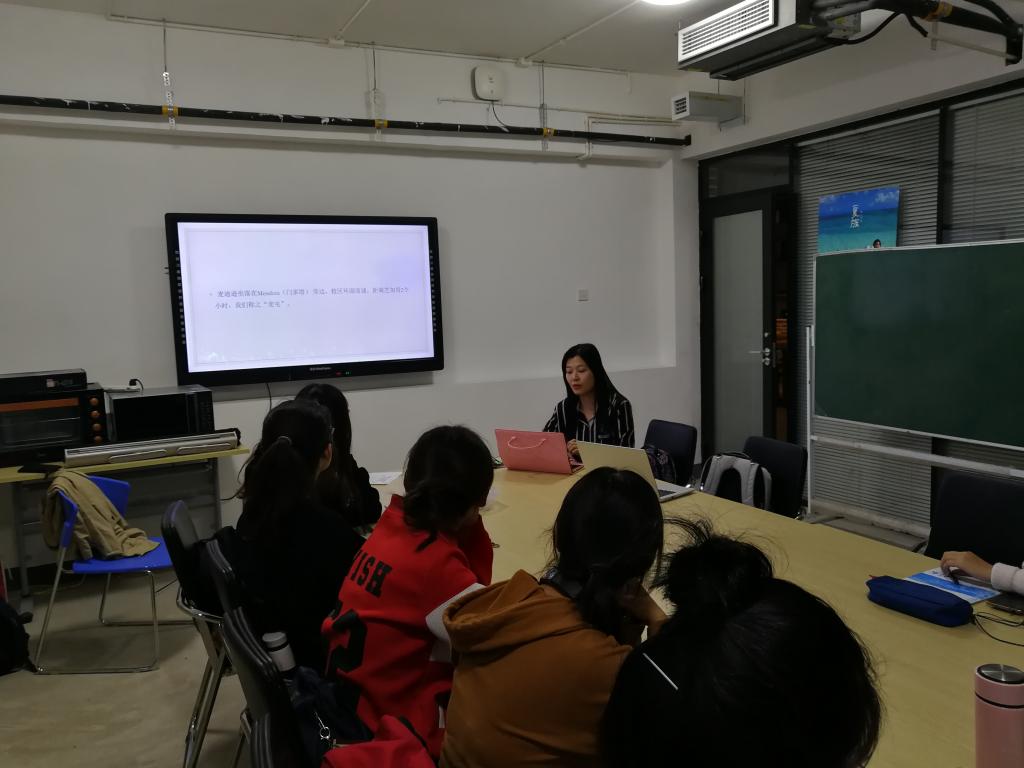 丹丹学姐首先介绍了自己在威斯康辛大学麦迪逊分校的校园环境与日常生活。科研与学习生活:麦迪逊坐落在门多塔旁边,校区环湖而建,距离芝加哥2个小时,因此被称之“麦屯”;学姐介绍到,麦屯的图书馆资源十分丰富,校区内共有三个图书馆,藏书之多几乎应有尽有;学校采用了选课制度,每月都需要进行学术报告;之后,学姐向同学们大致介绍、讲解了自己研究的句法语义学。校园环境与日常生活:麦屯环湖而建,景色优美,夏日的傍晚每天都会有人聚集在岸边吃饭、聊天;在美国,学生们很喜欢户外活动,或爬山或远足,同时也有许多派对与聚餐,这对美国的大学生来说是很重要的交流方式。