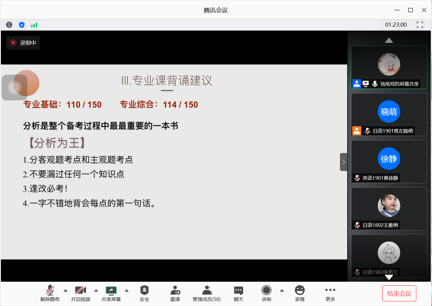 本次“与君说”针对“跨专业考研”这一主题,秦渊学姐结合自身的经历从多个方面进行了详细的讲解,将自己在考研中积累的经验分享给大家。学姐还为同学们推荐了多个备考APP、书籍、试卷、课程等等,让同学们有更多获取复习资料的途径。相信通过这一次课程,同学们对跨专业考研一定有了更清晰的认知,对自己的考研历程有了更完备的规划。