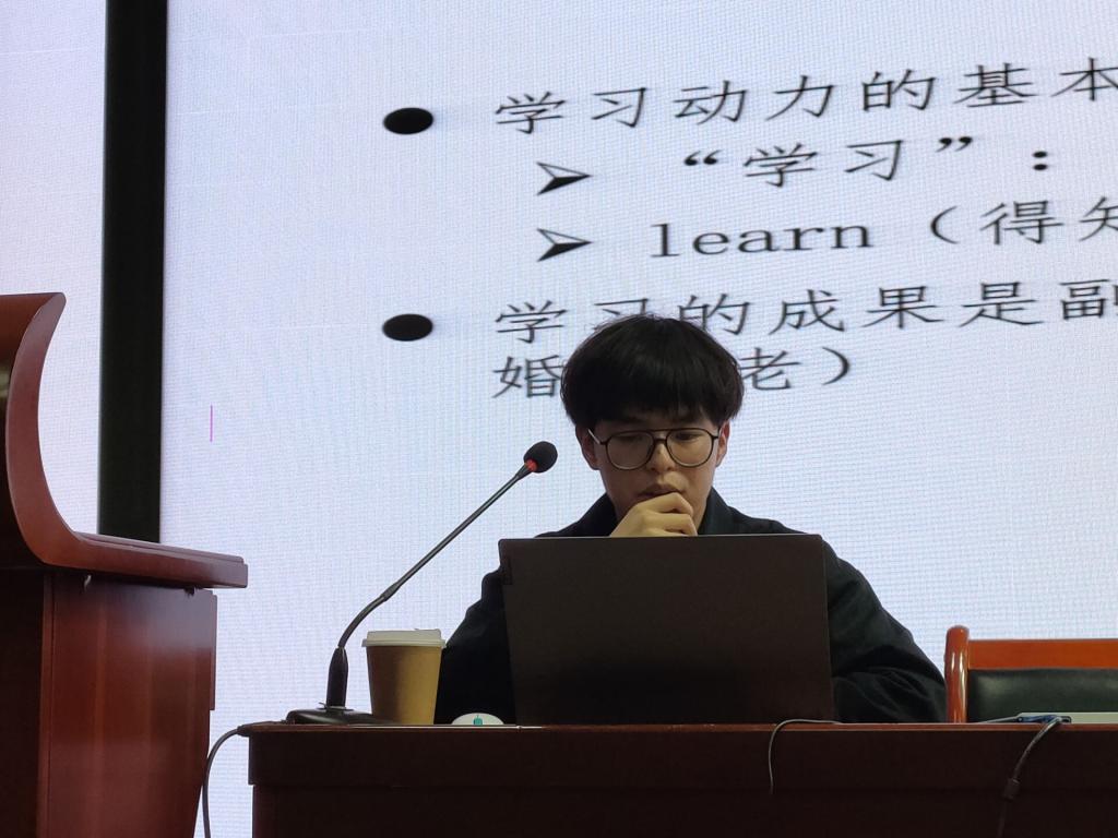 其中,马博同学从自身经历出发,详细分享了自身的学习方法和人生态度,并对同学们的未来发展提供了实际建议。马博同学指出,对于语言学习,我们应该抱着“为而无所求”的态度,“学”的目的是“学”,意义也是“学”。我们不应该以分数为导向,在期末考试前盲目突击,而是需要从自身出发,体悟自己,全方位了解自己的性格、人生目标、学习目的以及对知识的看法。