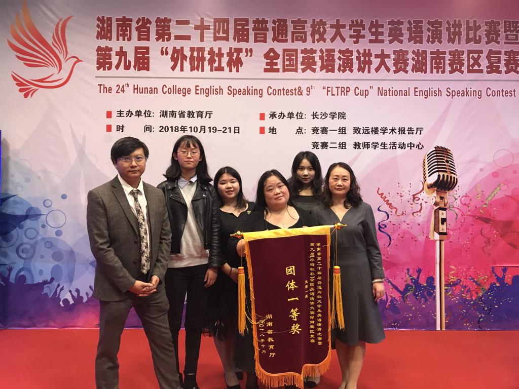 2018年10月19日至21日,由湖南省教育厅主办的湖南省第二十四届普通高校大学生英语演讲比赛暨第九届“外研社杯”全国英语演讲大赛湖南赛区复赛在长沙学院举行。湖南大学代表队以团体总分第一名荣获竞赛一组团体冠军。