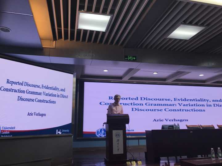 10月31日,荷兰莱登大学Arie Verhagen教授受邀来华体会官方网页版,在报告厅以“Reported Discourse, Evidentiality, and Construction Grammar: Variation in Direct Discourse Constructions”为题开展学术讲座,讲座由Chris Sinha教授主持。