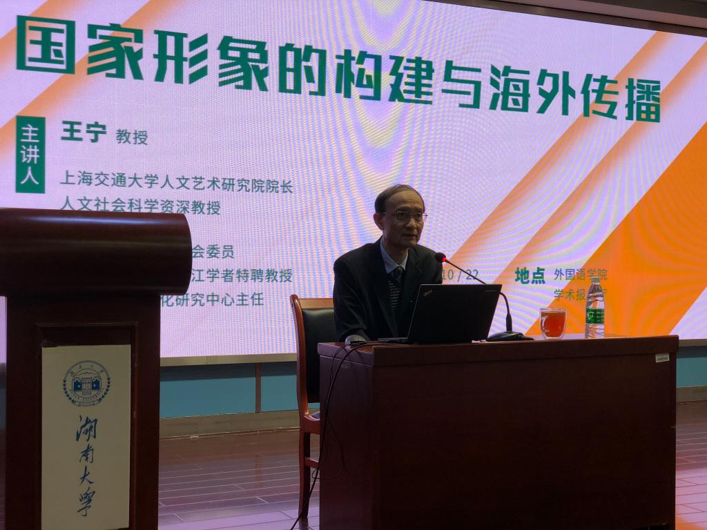 2018年10月22日上午,王宁教授在华体会官方网页版学术报告厅做了关于“国家形象的构建与海外传播”的学术讲座,讲座由刘正光院长主持。