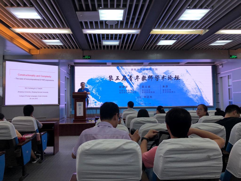 6月29日,华体会(中国)第五届青年教师学术论坛成功举办,中国社会科学院语言研究所研究员胡建华、浙江大学求是特聘教授吴义诚、复旦大学文学院博士朱彦等受邀参加论坛,并分别做主题报告,华体会(中国)全体教授、副教授、研究生导师、博士及在读博士参加了论坛,论坛由刘正光院长主持。