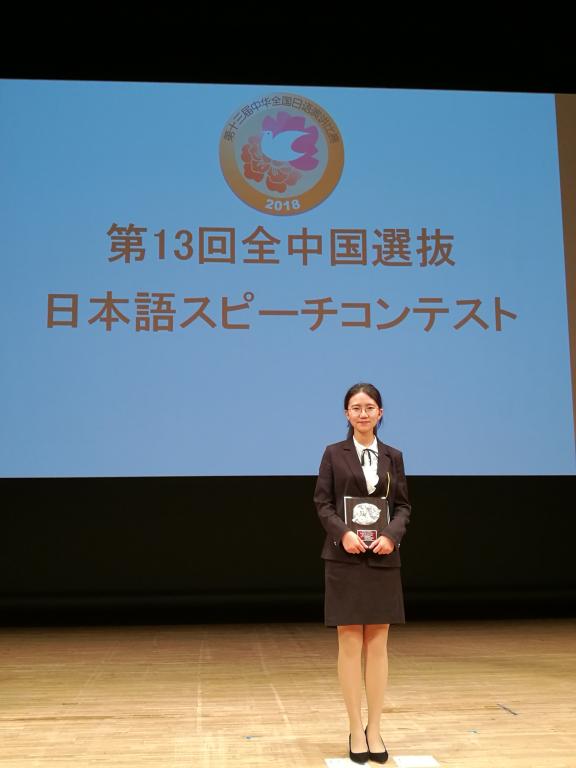 2018年7月17日,代表全国高校日语专业最高水平的第13届“中华杯”全国日语演讲比赛总决赛,在日本东京都日经会馆隆重举行。全国八大赛区16名选手齐聚一堂,展开了激烈的角逐。代表华中赛区参赛的我校外国语学院日语专业本科1501班陈沫言同学,以《人工智能将如何改变我们的生活》命题演讲和随后的即席问答演讲两轮精彩的表现,获得了全场一致好评,最终以总分第六名的成绩夺得大赛评委特别奖。在本次大赛初赛暨分区决赛中,陈沫言同学曾勇夺华中赛区亚军,在八大赛区234所学校的1.8万名选手中脱颖而出,获得赴日参加总决赛的机会。第六名的成绩不仅是是本次华中赛区选手中的的最佳排名,同时也是湖南省高校日语专业有史以来的最好成绩。冠亚军分别来自上外,北外和广外三所外国语院校。陈沫言同学在海外高水平的舞台用优异表现征服中日两国的评委与听众,充分展现了千年学府百年名校的底蕴和学子风采。