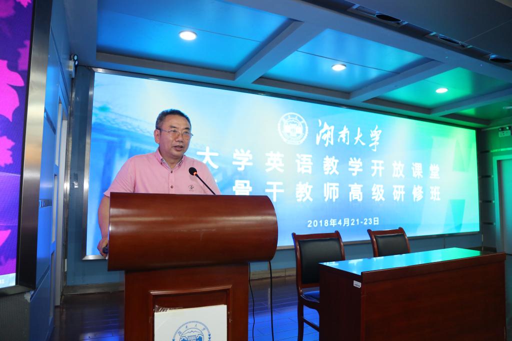 4月21-23日,湖南大学大学英语教学开放课堂暨骨干教师高级研修班在我校成功举办,来自全国各地高校近130名大学英语教师参加了本次教研活动。湖南省教育厅高教处处长曾力勤、上海外语教育出版社副总编辑谢宇、湖南大学华体会(中国)院长刘正光、大学外语部主任稂建中等出席4月21日下午的开幕式,并分别讲话致辞。本次教研活动由湖南大学华体会(中国)、上海外国语大学中国外语教材与教法研究中心、上海外教社教育培训中心联合举办。