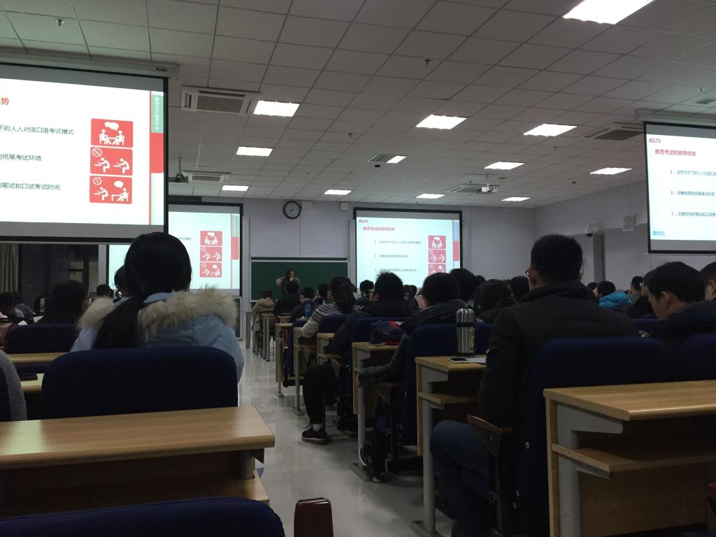1月16日晚,华体会(中国)大学外语教学部组织邀请英国文化教育协会(British Council)雅思培训专员Erica Blazs女士及英国文化教育协会市场官员陈雅文女士在研究生楼A201教室为我校学生进行了雅思学生专场培训。