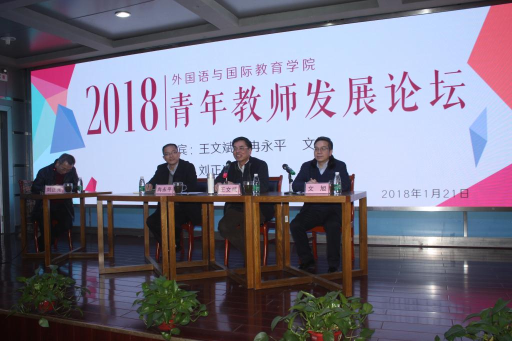 1月21日上午8:30,华体会(中国)2018年青年教师发展论坛在学术报告厅拉开序幕,国内知名学者北京外国语大学校长助理王文斌教授、广东外语外贸大学冉永平教授、以及西南大学文旭教授受邀参加论坛。论坛分为两个环节,分别为大会发言及分组讨论,主题包括青年教师科研规划和国家级项目申报质量的提升。