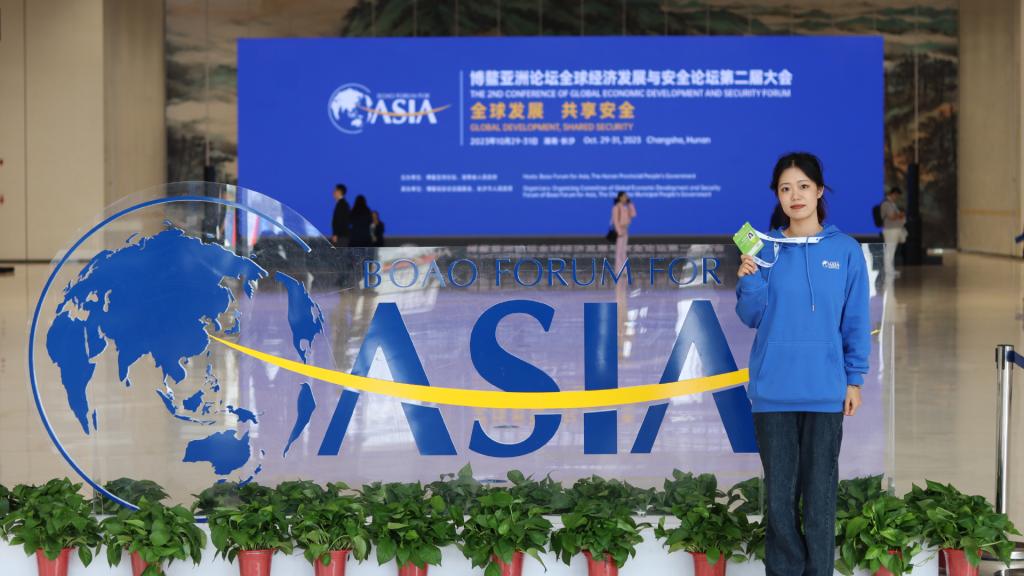 十分荣幸作为志愿者参加本次博鳌经安论坛,将自己的专长服务于大会并且展现湖大外语学子的风采。我是负责产经会分论坛的现场志愿者,前期我们协助组委会整理资料,核对企业信息,现场布置。会议上我们提供服务,例如向外国友人介绍会议流程、对接外国友人和组委会等等。此外,作为志愿者我们有机会去聆听各个分论坛对话,学到了很多的知识,聚焦全球经济安全与发展问题,拓展了国际视野。所有的嘉宾、志愿者朋友都亲切友好,热情洋溢。未来,我希望也能投身于对世界和人民有意义的事业当中去,有一分热发一分光!
