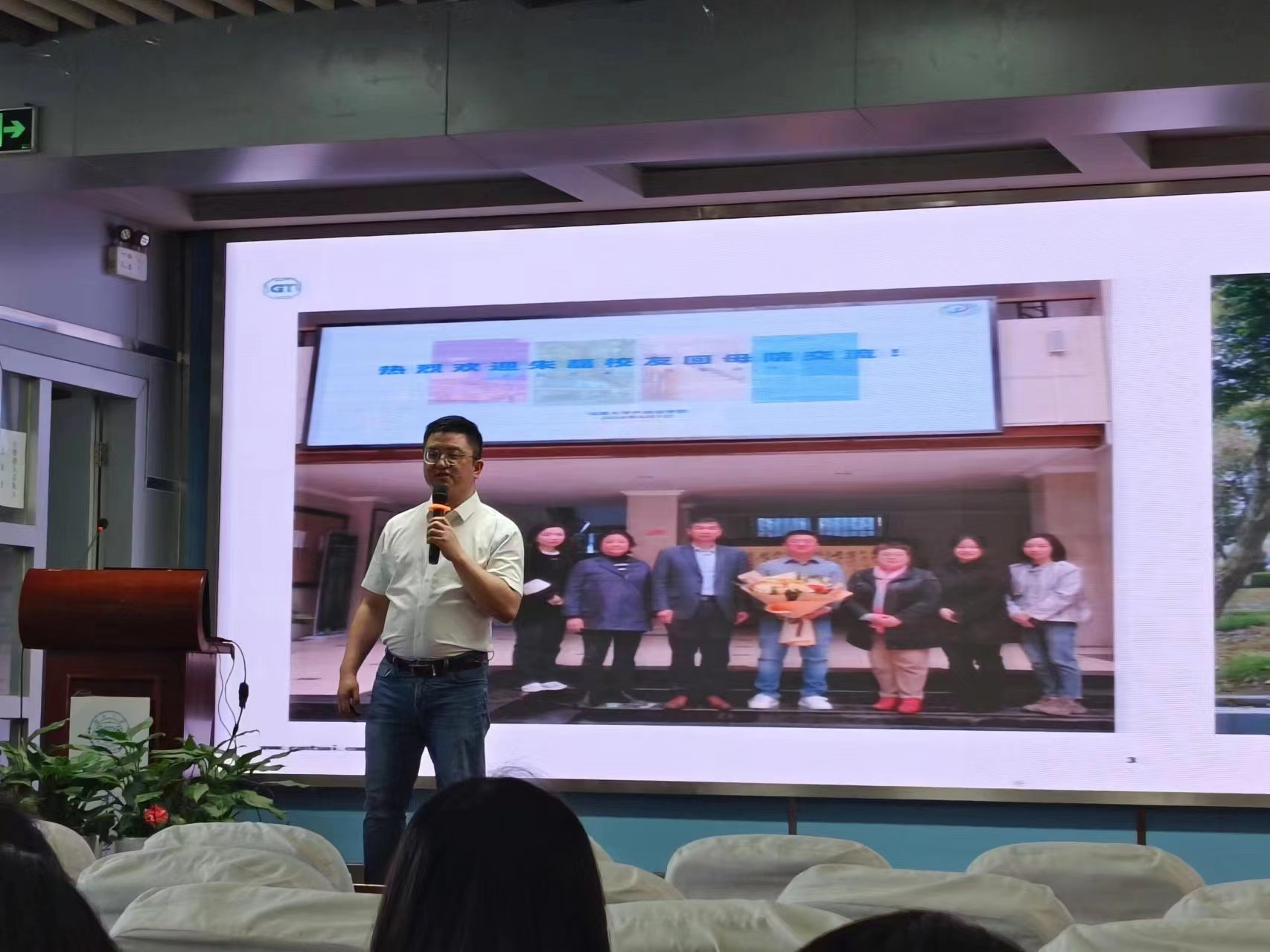会前,莫再树对校友朱磊重返母院表示热烈欢迎,向在场同学们介绍了朱磊的情况,鼓励同学们认真听讲、积极互动,向优秀校友多多取经学习。