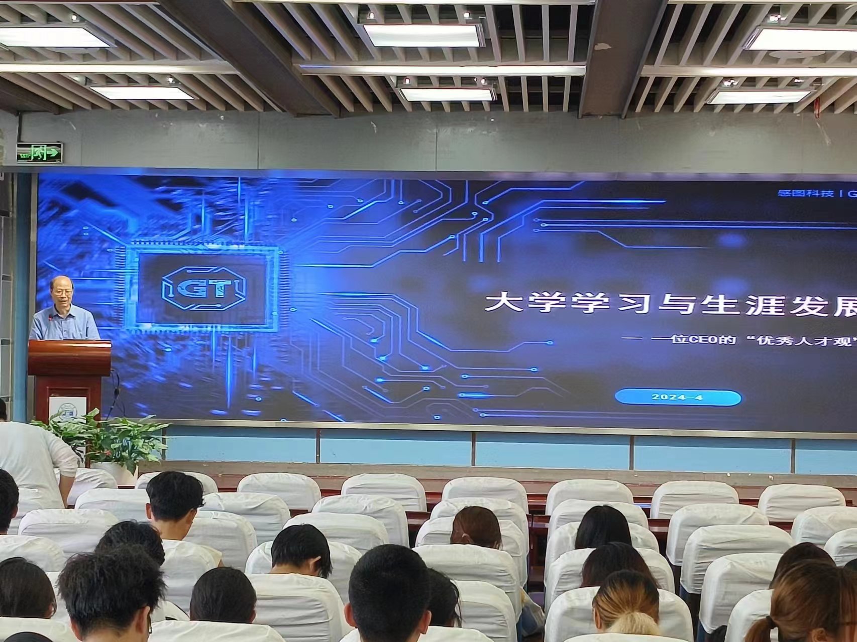 朱磊向同学们介绍了他的大学生活。大学期间,朱磊做过最多的事情就是泡在图书馆看书;四年的时间里,他看了超过1200本书,为创业打下了坚实的知识基础。谈及对于“人才”这一概念的理解,朱磊认为,在现今的国际环境下,相较于“T型”和“π型”人才,“梳子型”的人才能够规避被AI取代的风险,对未来社会发展的适应能力更强。