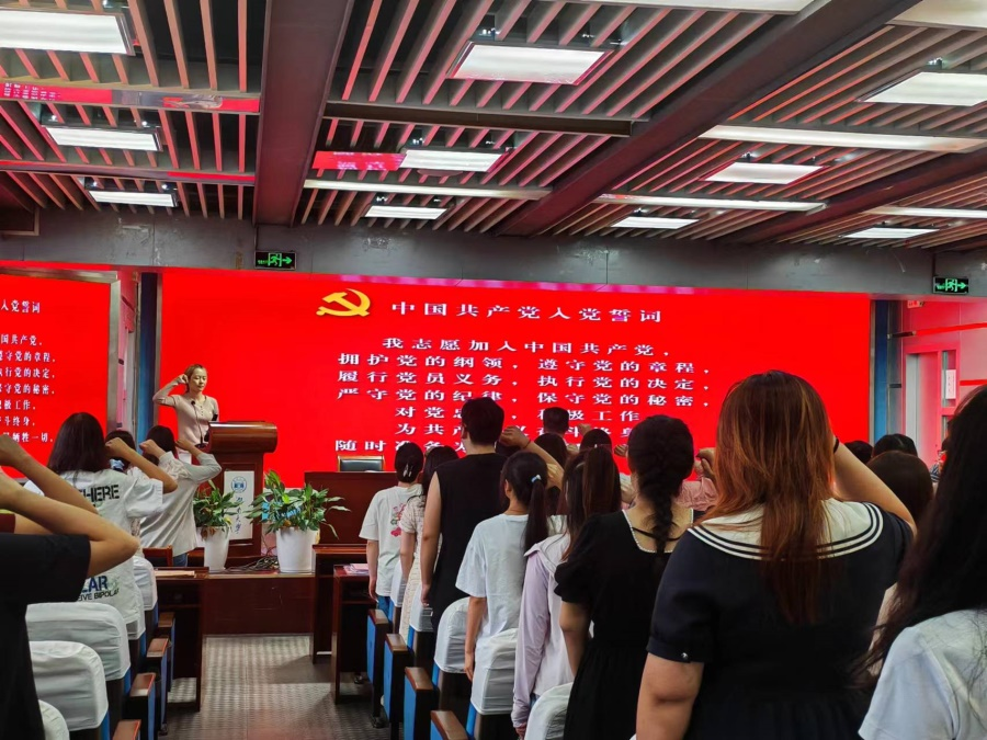 活动最后,全体毕业生党员起立,由学生党支部书记郑思思同志领誓,重温入党誓词。