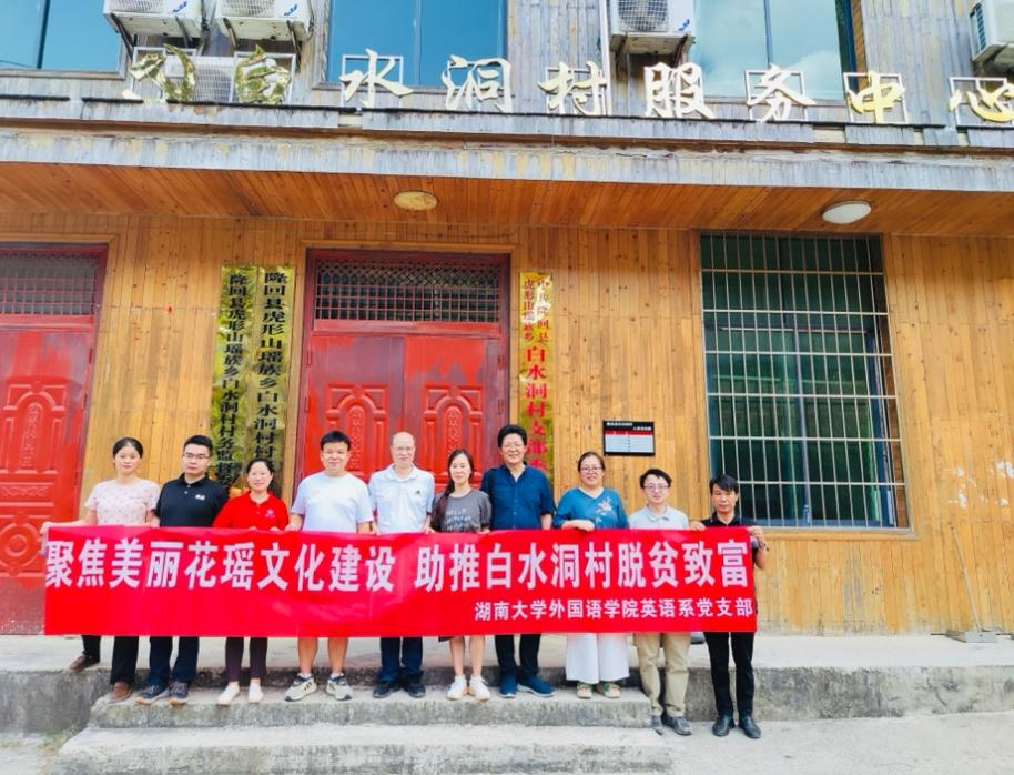 8月9-11日,英语系党支部组织支部委员与教工党员代表赴邵阳市隆回县白水洞村,开展“聚焦美丽花瑶文化建设助推白水洞村脱贫致富”主题党日活动。