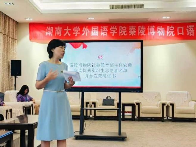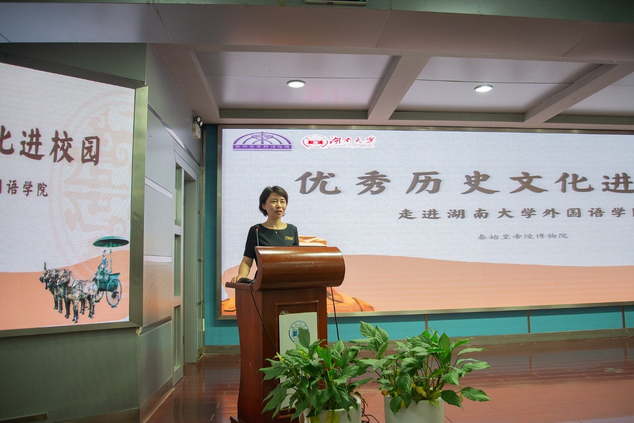 湖南大学华体会(中国)高度重视秦陵博物院口语实习相关工作,于5月21日邀请秦陵博物院的专家来校授课,将秦陵文化走进校园。专家老师们用图文并茂的中外文讲解,为华体会(中国)的师生们带来了一场酣畅淋漓的文化盛宴。在同学们正式出发之前,实习带队老师们也在线上进行了详细的讲解词检查等准备工作,确保每一名参与实习的同学能够高效完成实习任务。