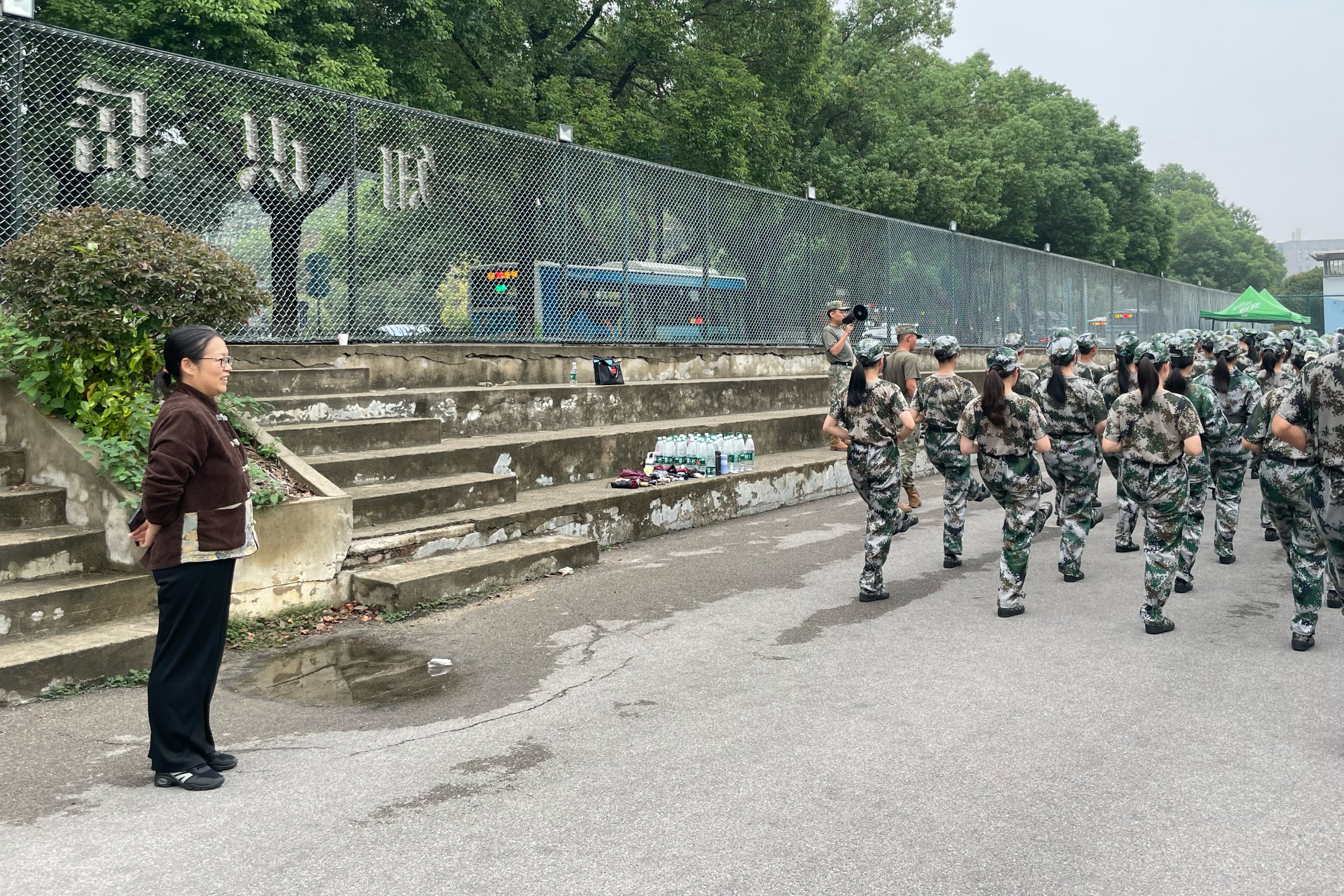 军训期间,学院领导、班主任老师们也时常来到军训场地,关心同学们的训练进度与健康状况。