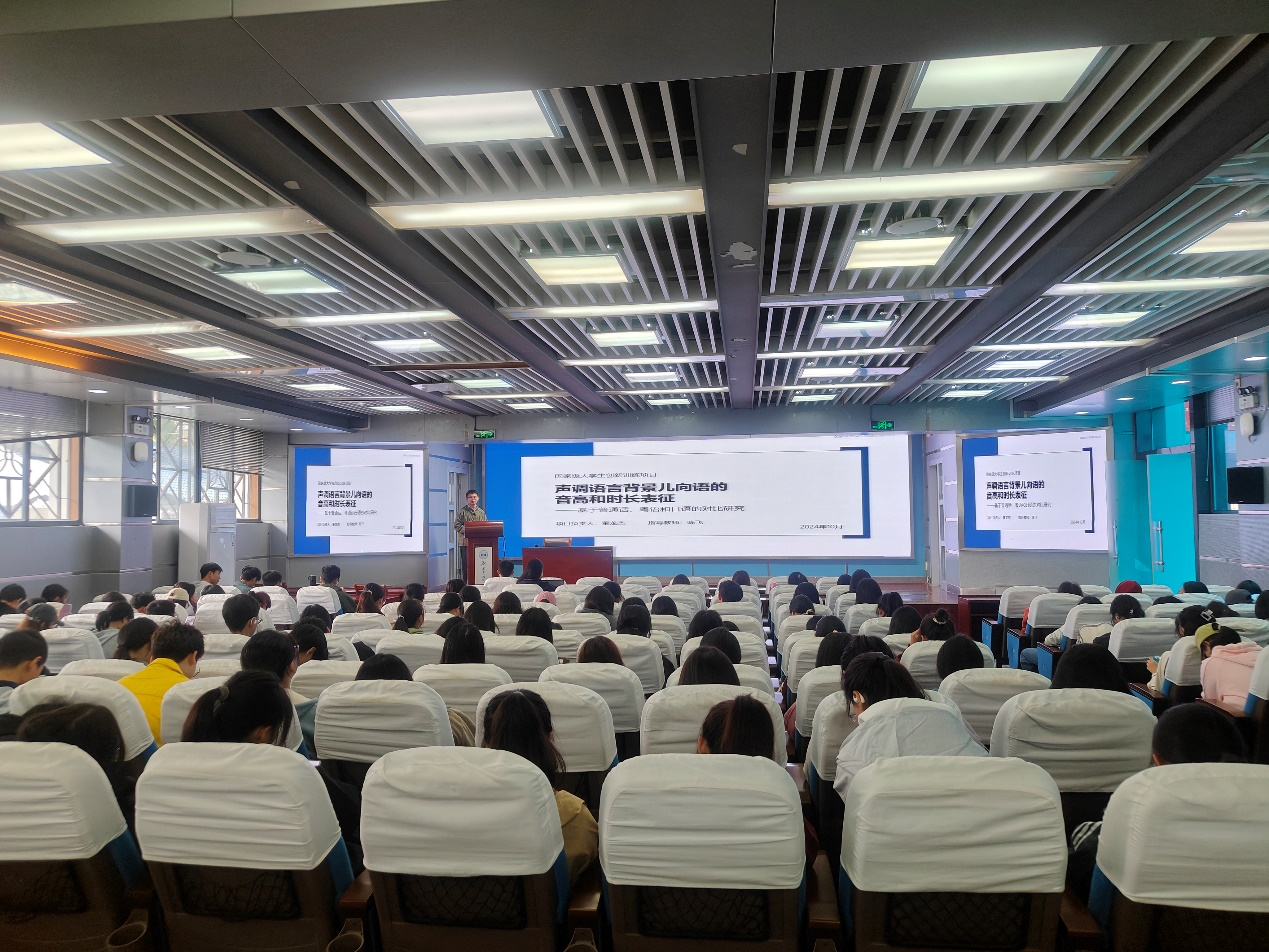 董龙杰同学分享了其在本科期间主持的项目——声调语言背景儿向语的音高和时长表征--基于普通话、粤语、日语的对比研究。他从项目的内容,项目研究过程,研究方法和研究结果进行了分享。