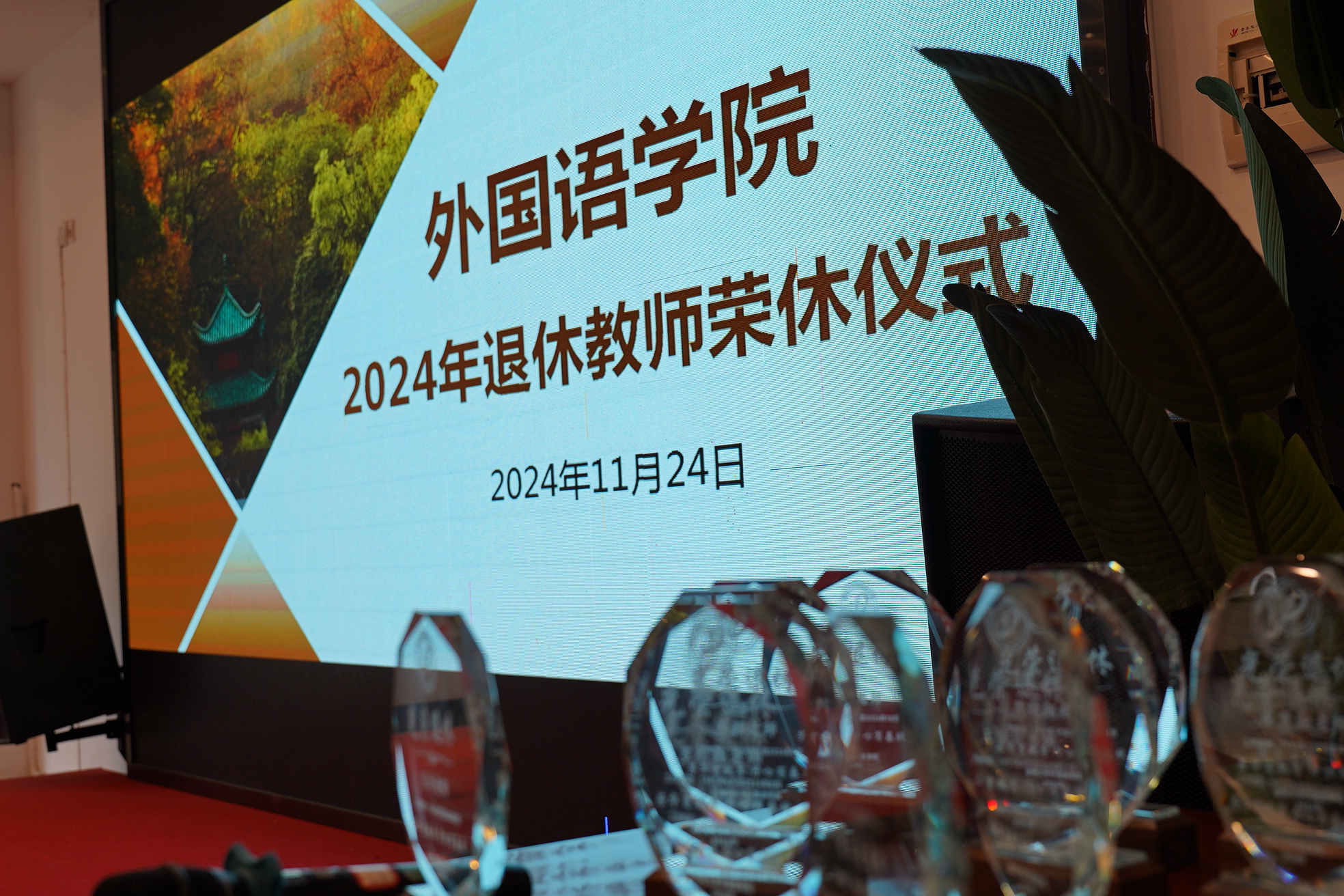 随后,学院在大明山庄举行2024年退休教师荣休仪式。院长莫再树代表学院致辞,向退休教师们送上祝福的同时,也表示希望退休教师们一如既往关心支持学院发展与学生成长,常回学院看看。学工办辅导员们为退休教师们送上原创诗歌,用深情朗诵向退休教师们表达感恩与敬意。院党委书记徐军、院长莫再树为退休教师们颁发纪念牌,对老师们的默默耕耘与辛勤付出表示感谢。