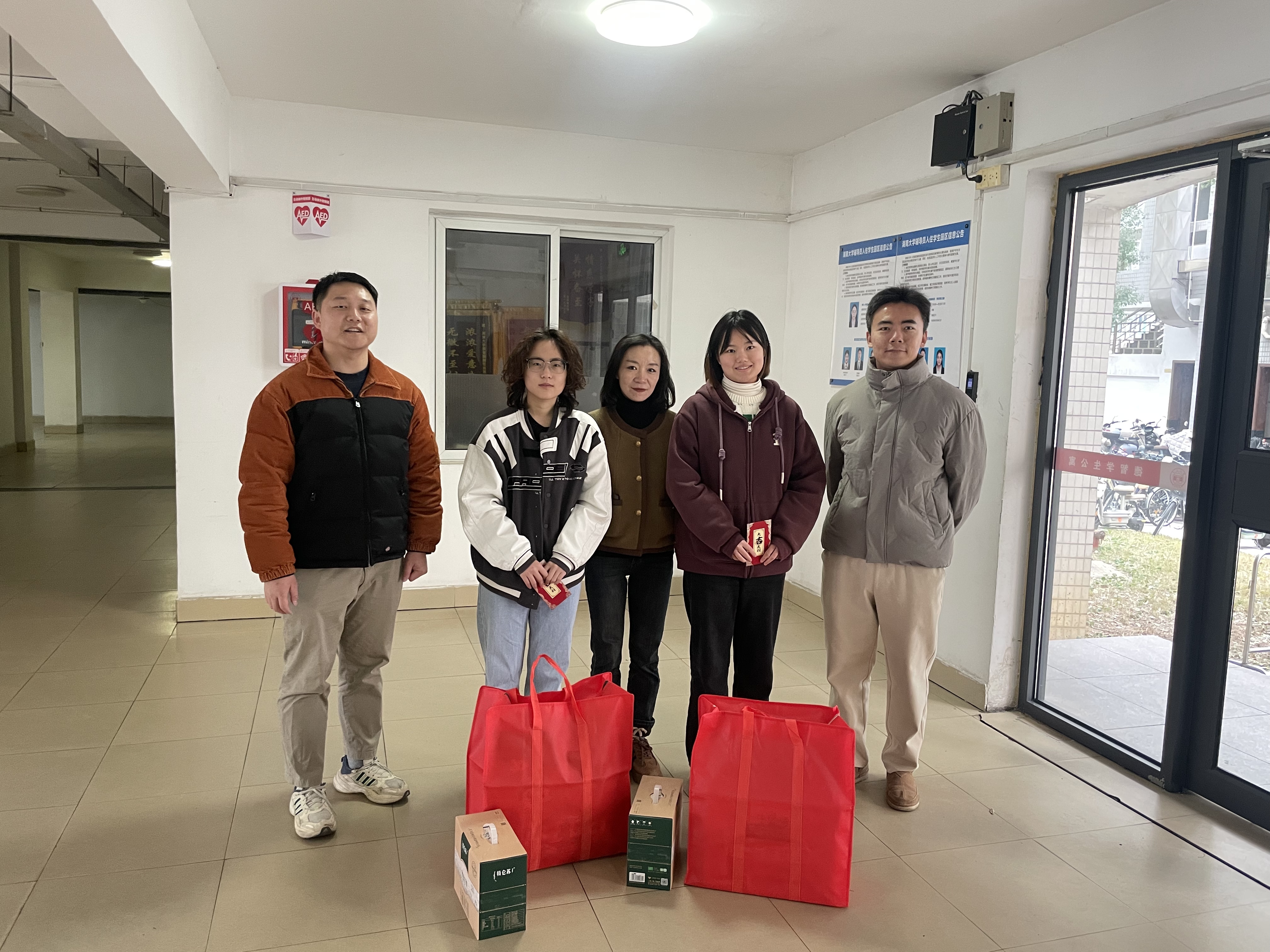 交流过程中,学院党委副书记熊翀详细询问了同学们留校的原因、学习生活安排以及是否存在困难。同学们纷纷敞开心扉,分享了自己留校的打算,有的同学为了准备考研复试,希望利用假期时间安心复习;有的同学则是为了参加实习项目,积累实践经验。对于同学们的选择,老师们给予了充分的肯定和鼓励,并叮嘱大家要合理安排时间,做到劳逸结合,保持良好的学习和生活状态。此外,老师们还特别提醒大家要注意个人防护,保持宿舍卫生,加强锻炼,确保在学校度过一个安全、健康、愉快的春节。针对同学们在学习和生活中遇到的问题,老师们耐心解答,提供了许多实用的建议和帮助。随后,老师们为每位留校学生送上了精心准备的春节慰问品,包括新春大礼包、新年红包等,每一份礼物都承载着学院对同学们深深的关爱与祝福。