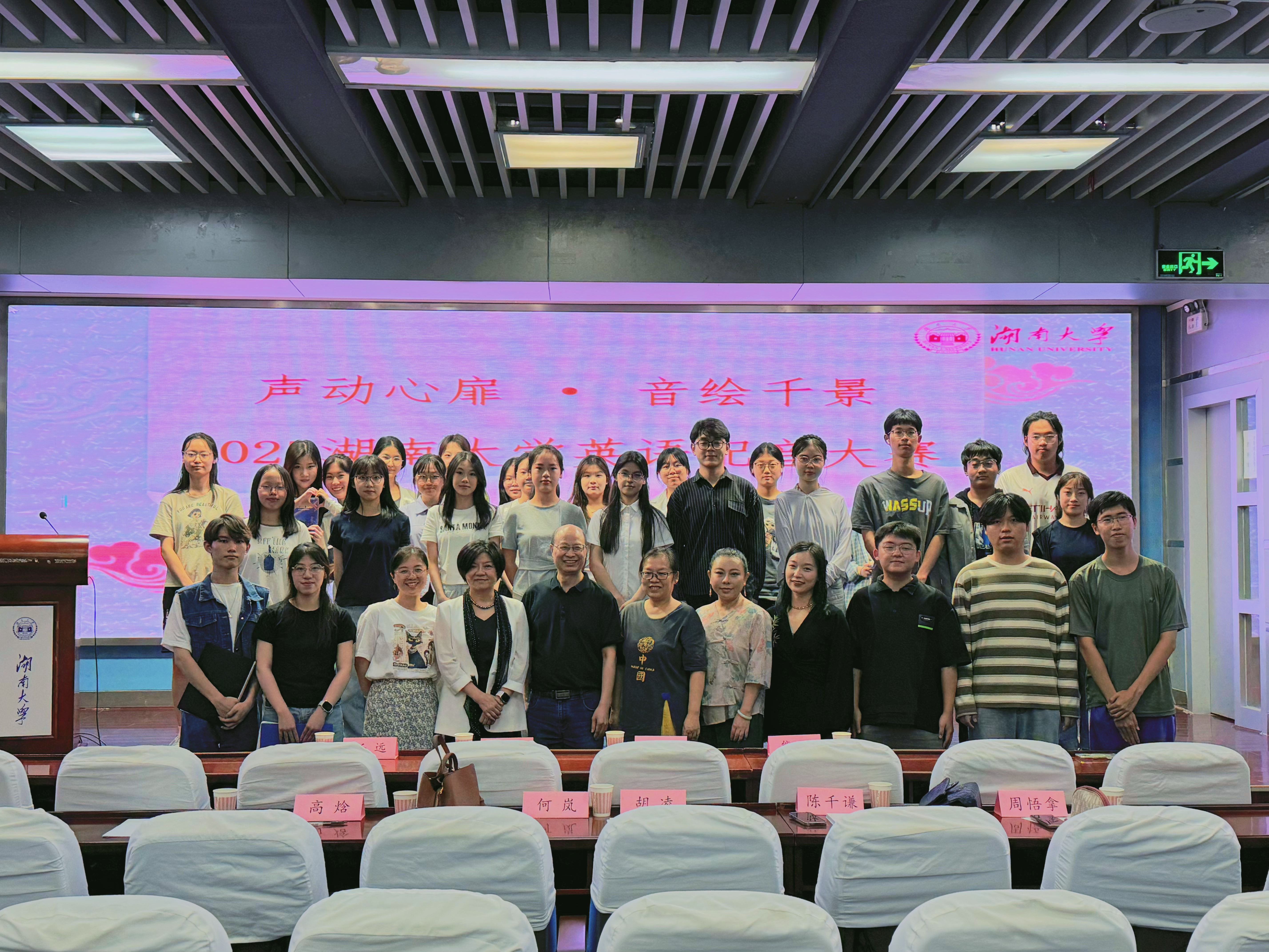 5月23日晚,2025年湖南大学“声”动心扉·“音”绘千景英语配音大赛在华体会(中国)报告厅举行,来自不同学院的35名学生参加比赛。
