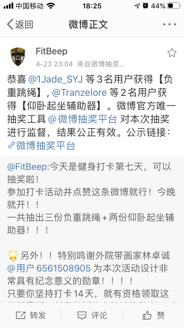 参与活动的同学都获得了很好的活动体验,在活动期间同学们学会了坚持、自律并且结交志同道合的朋友,一起努力,一起成长,一起变健康!通过体育运动形式的心理活动不仅收获了漂亮身材还收获了好心情,缓解近期压力以及各种负性情绪,运动更好的转移学生们的注意力,在排汗的过程中,消极情绪也随之排解。当然参与活动还有奖品拿!