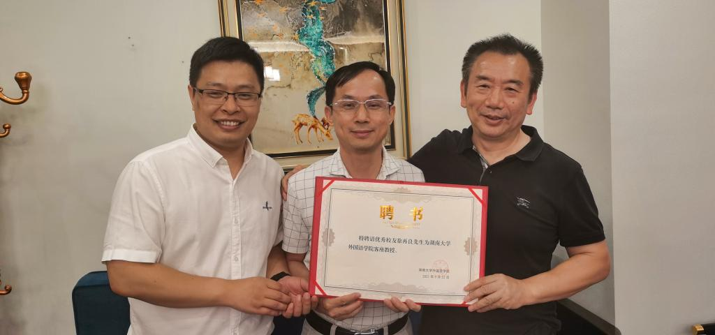 徐再良校友毕业后,心系母校母院,长期致力于校友工作。也为华体会官方网页版毕业生提供很多就业和实习单位的平台,以这种形式反馈于华体会官方网页版就业工作。作为广州校友会的元老级人物,为在粤校友搭建了交流平台,一直为湖南大学发展贡献力量。徐再良表示很荣幸能够获评为母院客座教授,将以此为契机继续努力为学校学院发展做出自己的贡献。