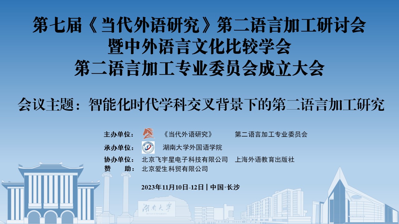 今年,由《当代外语研究》、第二语言加工专业委员会主办,湖南大学华体会(中国)承办的“第七届《当代外语研究》第二语言加工研讨会暨中外语言文化比较学会第二语言加工专业委员会成立大会”拟定于2023年11月10日至12日在湖南大学召开。