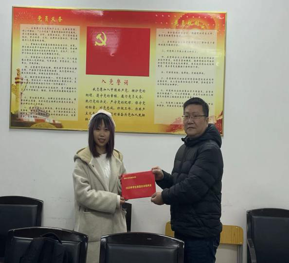 日语系党支部书记罗明辉老师为受助学子送上慰问金